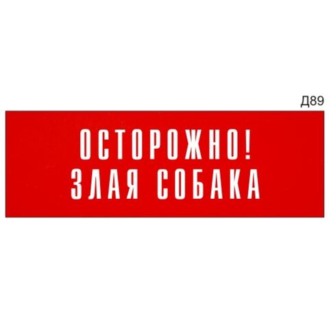 «Осторожно! Злая собака» - Информационная табличка на дверь, прямоугольная, Д89