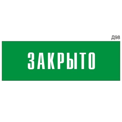 «Закрыто» - Информационная табличка на дверь, прямоугольная, Д98
