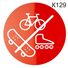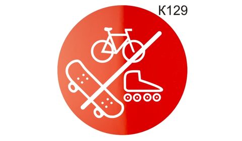 Информационная табличка «Вход, катание на велосипедах, роликах, скейтбордах запрещено» надпись на дверь пиктограмма K129