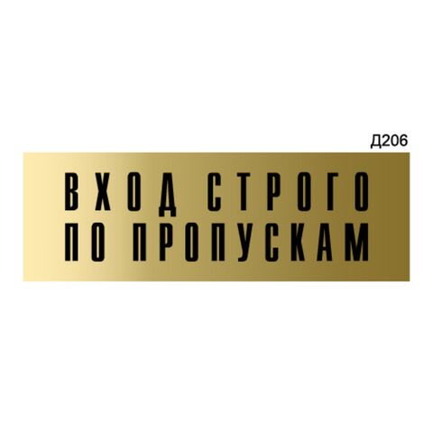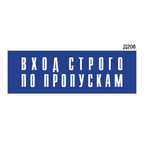 Информационная табличка «Вход строго по пропускам» прямоугольная Д206 (300х100 мм)