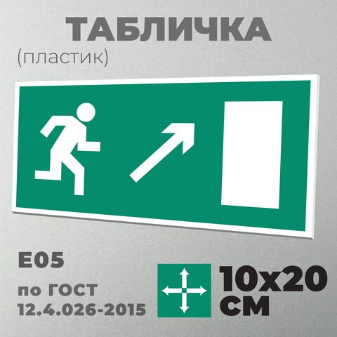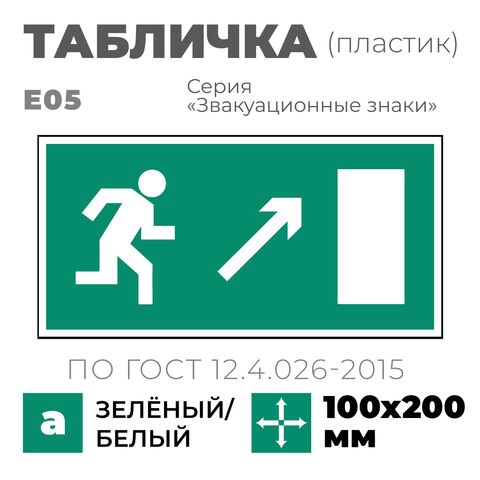 Табличка E05 (10х20 см) «Направление к эвакуационному выходу направо вверх»