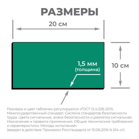 Изображения на табличках и их размер выполнены по рекомендациям «ГОСТ 12.4.026-2015. Межгосударственный стандарт. Система стандартов безопасности труда. Цвета сигнальные, знаки безопасности и разметка сигнальная. Назначение и правила применения. Общие технические требования и характеристики.» (введен в действие Приказом Росстандарта от 10.06.2016 N 614-ст).