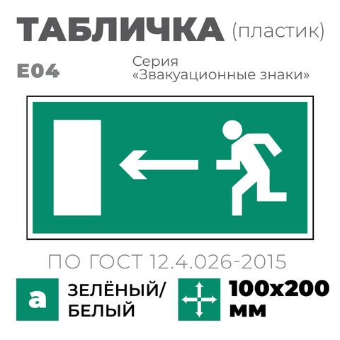 Табличка E04 (10х20 см) «Направление к эвакуационному выходу налево»
