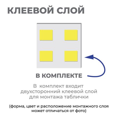 - В комплекте прилагаются несколько двухсторонних клеевых элементов для крепления таблички на гладкую поверхность.