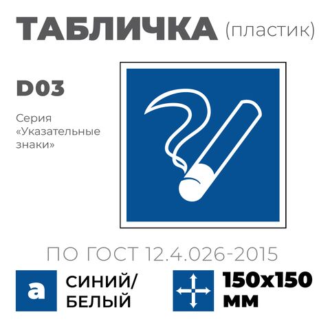 Табличка D03 (15х15 см) «Место курения»