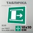 Пластиковая табличка-указатель на стену с изображением сдвижной двери и стрелки, указывающей направо. Изображение выполнено белым цветом на зеленом фоне с белой рамкой по контуру.