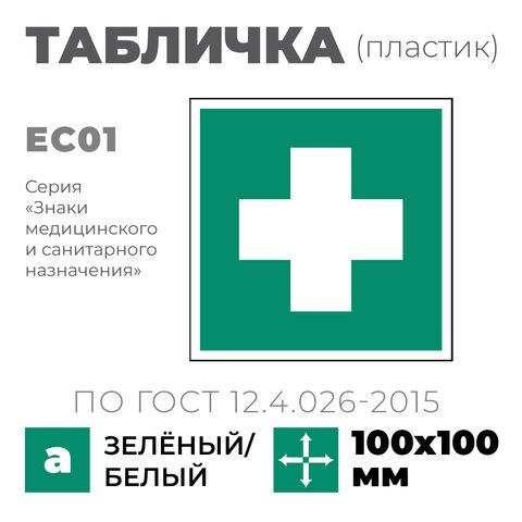 Табличка EC01 (10х10 см) «Аптечка первой медицинской помощи»