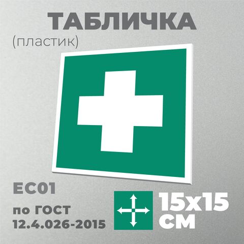 Табличка EC01 (15х15 см) «Аптечка первой медицинской помощи»