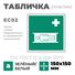 Пластиковая табличка-указатель с носилками и крестом, на стену. Изображение выполнено белым цветом на зеленом фоне с белой рамкой по контуру.