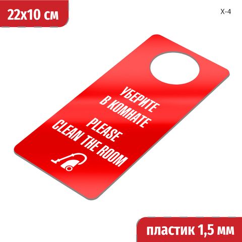 Табличка хенгер на ручку двери «Уберите в комнате, Please clean the room» 220х100 мм