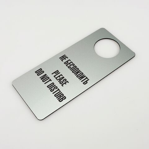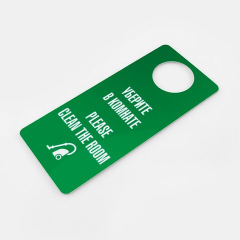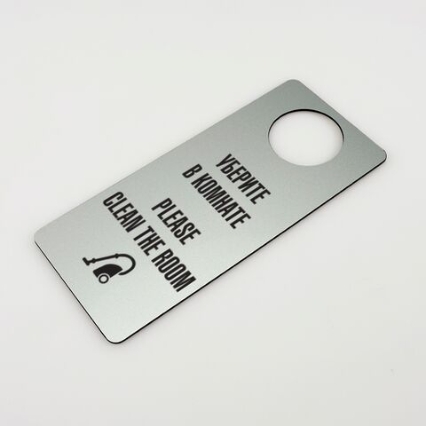 Табличка хенгер на ручку двери «Уберите в комнате, Please clean the room/Не беспокоить, Please do not disturb». Шаблон Xd2. Табличка двухсторонняя, толщина 3 мм. С одной стороны надпись - Уберите в комнате, Please clean the room, с другой - Не беспокоить, Please do not disturb. Есть возможность заказать разные цвета на каждую сторону, н.р. красный и зелёный, серебро и золото.