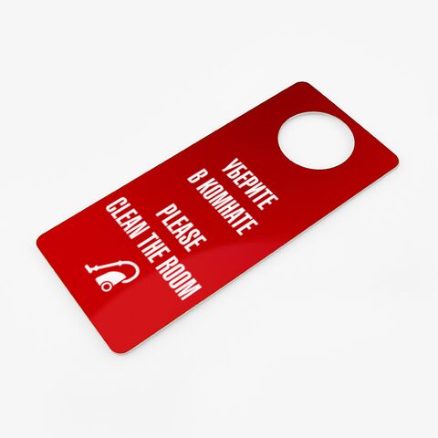 Табличка хенгер на ручку двери «Уберите в комнате, Please clean the room/Не беспокоить, Please do not disturb» 220х100 мм двухсторонняя 3 мм, Xd2