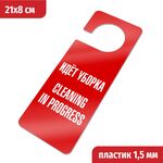 Табличка хенгер на ручку двери «Идет уборка, Cleaning in progress» 210х80 мм односторонняя 1,5 мм, с прорезью, XК1