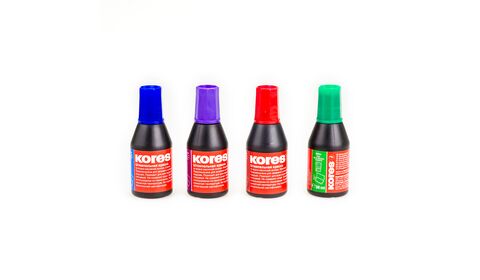 Штемпельная краска KORES, комплект 4 цвета (синяя, красная, фиолетовая, зелёная)