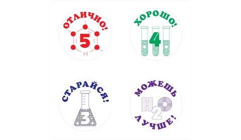 Комплект полуавтоматических печатей для школы «Химия», 4 цветных печати, ручная оснастка с кнопкой, д.24 мм, Тип-10