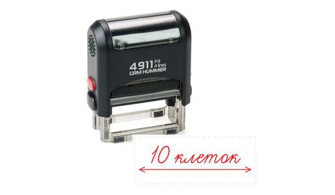 Оценочный штамп для школы с текстом «10 клеток (горизонтальные стрелки)» на автоматической оснастке GRM 4911 P3 Hummer. Штамп красного цвета подходит для использования в начальной и средней школе и ускоряет проверку тетрадей.