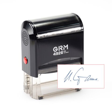 Факсимиле Владимира Ленина штамп с подписью, 75x38 мм, на автоматической оснастке GRM 4926 P3 Hummer, чёрный корпус