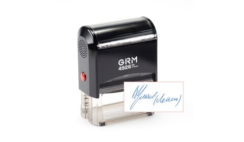 Факсимиле Иосифа Сталина штамп с подписью, 75x38 мм, на автоматической оснастке GRM 4926 P3 Hummer, чёрный корпус