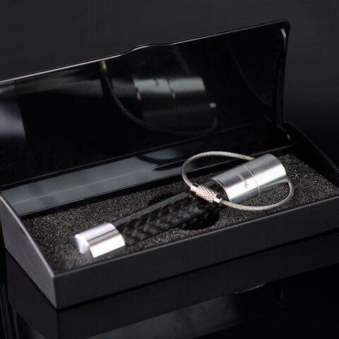Дизайнерская флэш-карта с интегрированным штампом. Корпус сделан из углеродного волокна и алюминия с брелоком.