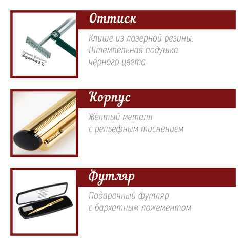 - В комплекте: ручка-штамп, футляр