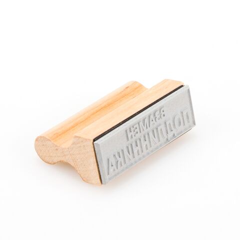 Штамп на деревянной оснастке по ГОСТ, изготовлен из резины методом лазерной гравировки, на деревянной оснастке.