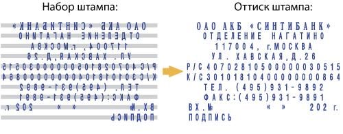 Внимание! Набор информации на текстовую плату самонаборного штампа осуществляется справа налево в зеркальном отражении.