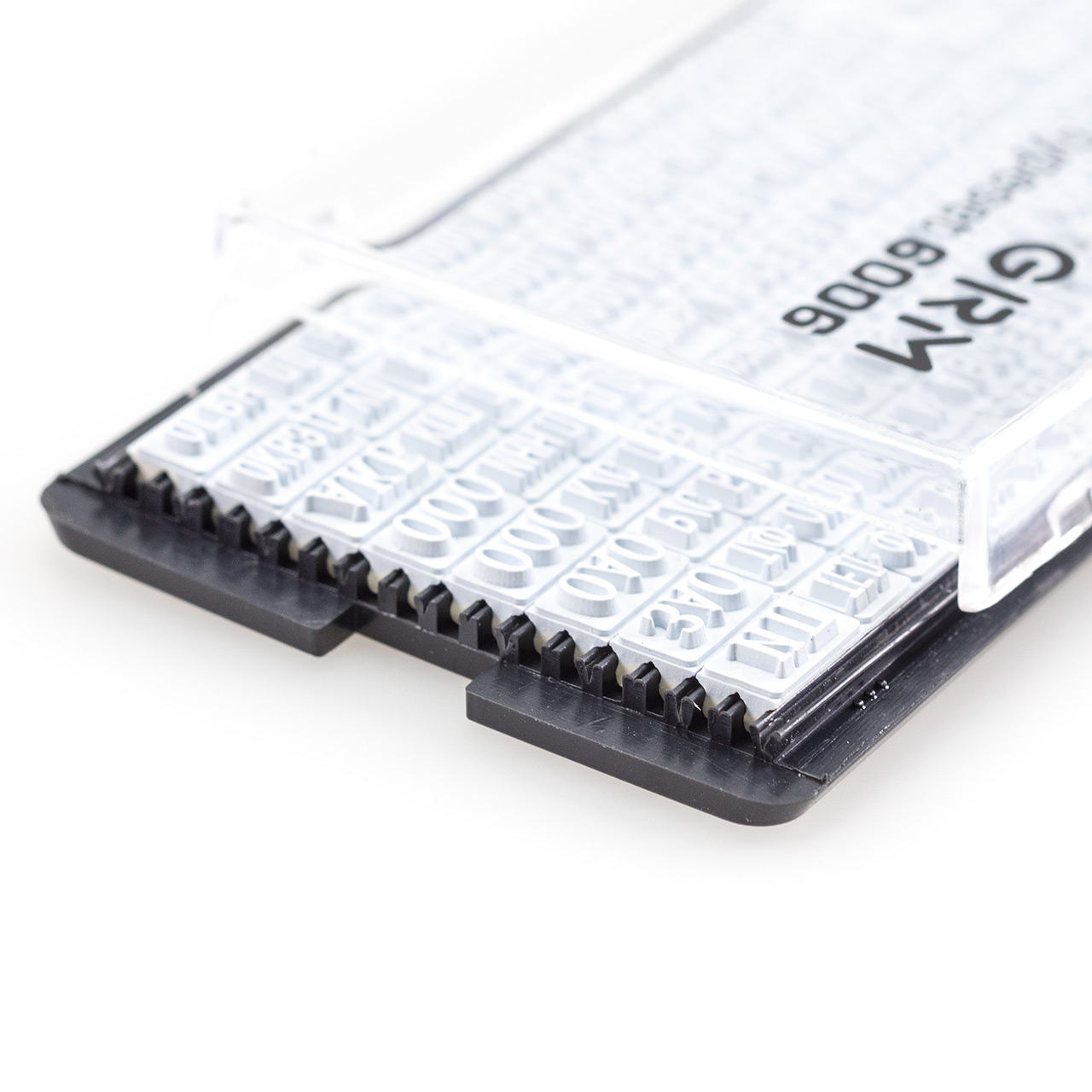 Комплект самонаборного штампа GRM 4929 P3 Typo и касс шрифта 6005, 6006 в экономичной упаковке. Крепление символов "двуножечное".