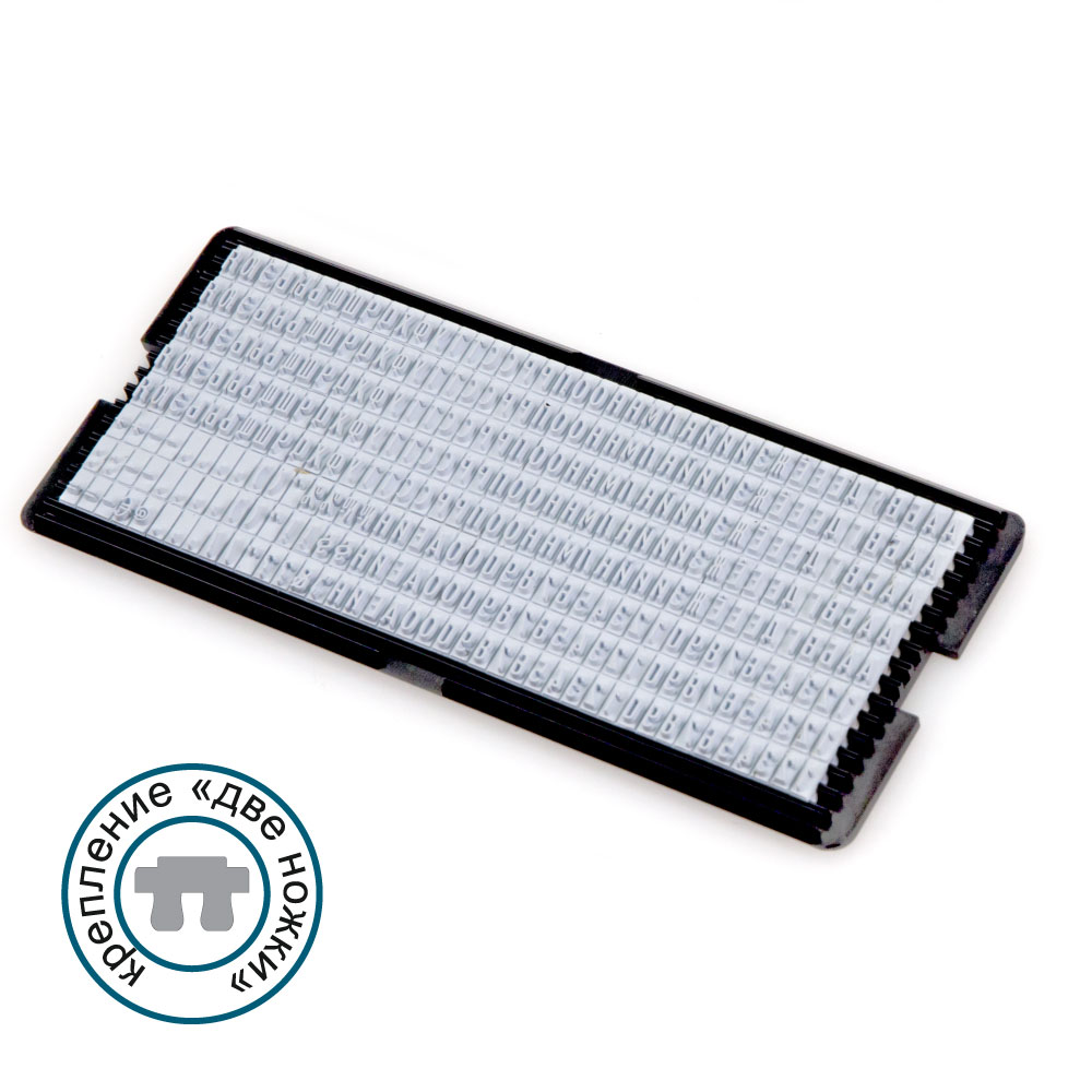 6003 - Касса русского шрифта высотой 3 мм с системой крепления символов «две ножки». Используется с самонаборными штампами и датерами. Все элементы легко вставляются в рифленую информационную плату оснастки.